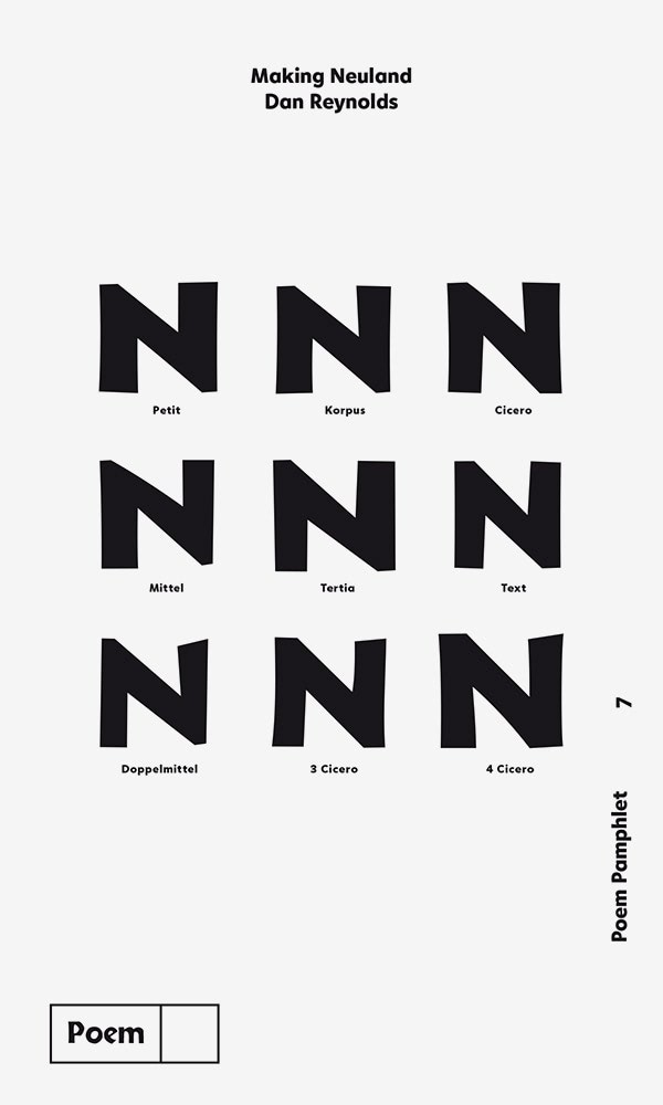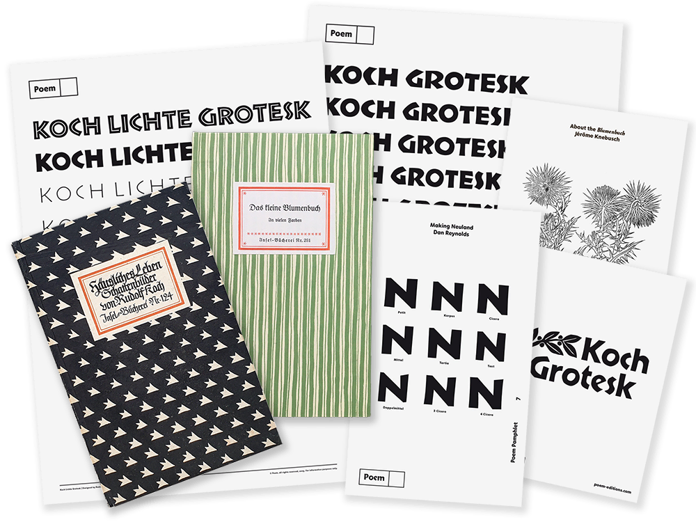 Poem is an independent publisher of editions and typefaces directed by Jérôme Knebusch and located in Frankfurt am Main. The editions – artworks, typefaces, books, pamphlets, posters – are often based on longer research and seek originality and quality in production. They are distributed exclusively on this website and shipped worldwide.