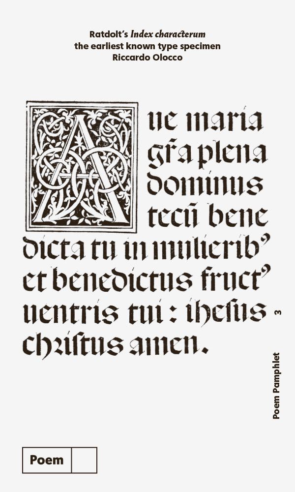 Riccardo Olocco is a type designer and member of CAST — Cooperativa Anonima Servizi Tipografici. Besides designing, he’s a researcher in the history of type and typography combining bibliographical knowledge with detailed analysis of letterforms. He has recently delivered a PhD thesis at the University of Reading concerning 15th-century Venetian roman types. When taking there an MA in typeface design he also fell in love with Bengali script. Prior to this he was a lecturer at the University of Bolzano. He currently lives in Bolzano, in northern Italy. → View editions