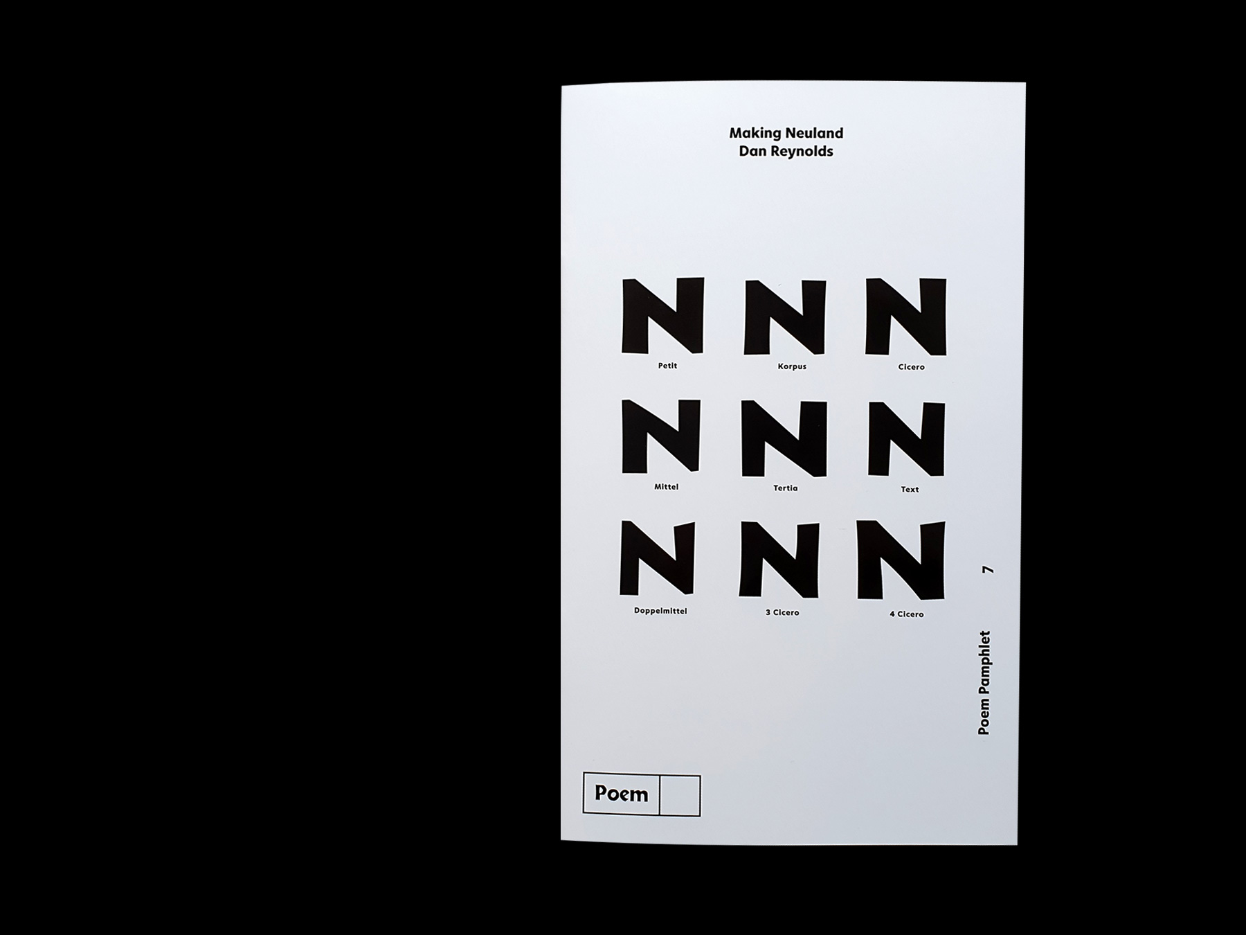 Poem is an independent publisher of editions and typefaces directed by Jérôme Knebusch and located in Frankfurt am Main. The editions – artworks, typefaces, books, pamphlets, posters – are often based on longer research and seek originality and quality in production. They are distributed exclusively on this website and shipped worldwide.