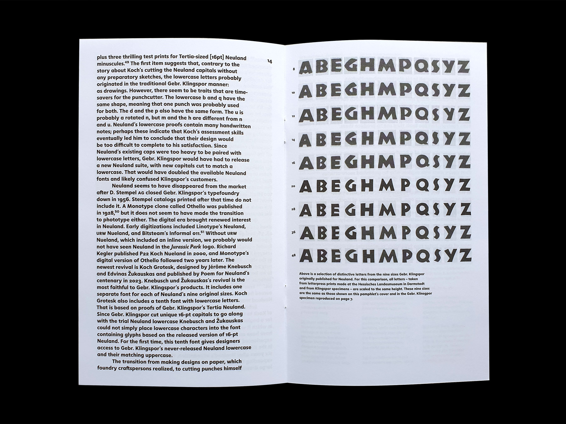 Dan Reynolds is a design historian based in Krefeld, where he teaches typography at the Hochschule Niederrhein. Since receiving a doctorate from the Braunschweig University of Art in 2019, he has focused his research on the history of the H. Berthold AG, particularly before 1914. Yet, Gebr. Klingspor will always be his favorite of the old foundries. Before turning to research, Dan worked as a marketer and type designer for several digital foundries and font-reselling services. → View editions
