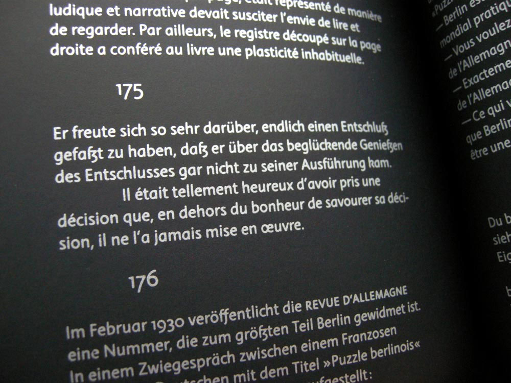 Sandrine Nugue (1985) is an independent type & graphic designer based in Montpellier. She has published the typefaces Infini (Centre National des Arts Plastiques.), Injurial (205TF), Orientation and Moulin (Commercial Type) and Camelion (OH no Type). Some of her typefaces received the Certificate of Excellence by the Type Directors Club of New York. In 2018, she organized a dance performance with Fotokino on the Piazza at the Centre Pompidou, Paris. She continued her interest in dance through her research on the dancer Jean-Etienne Despréaux (1748-1820). → View editions