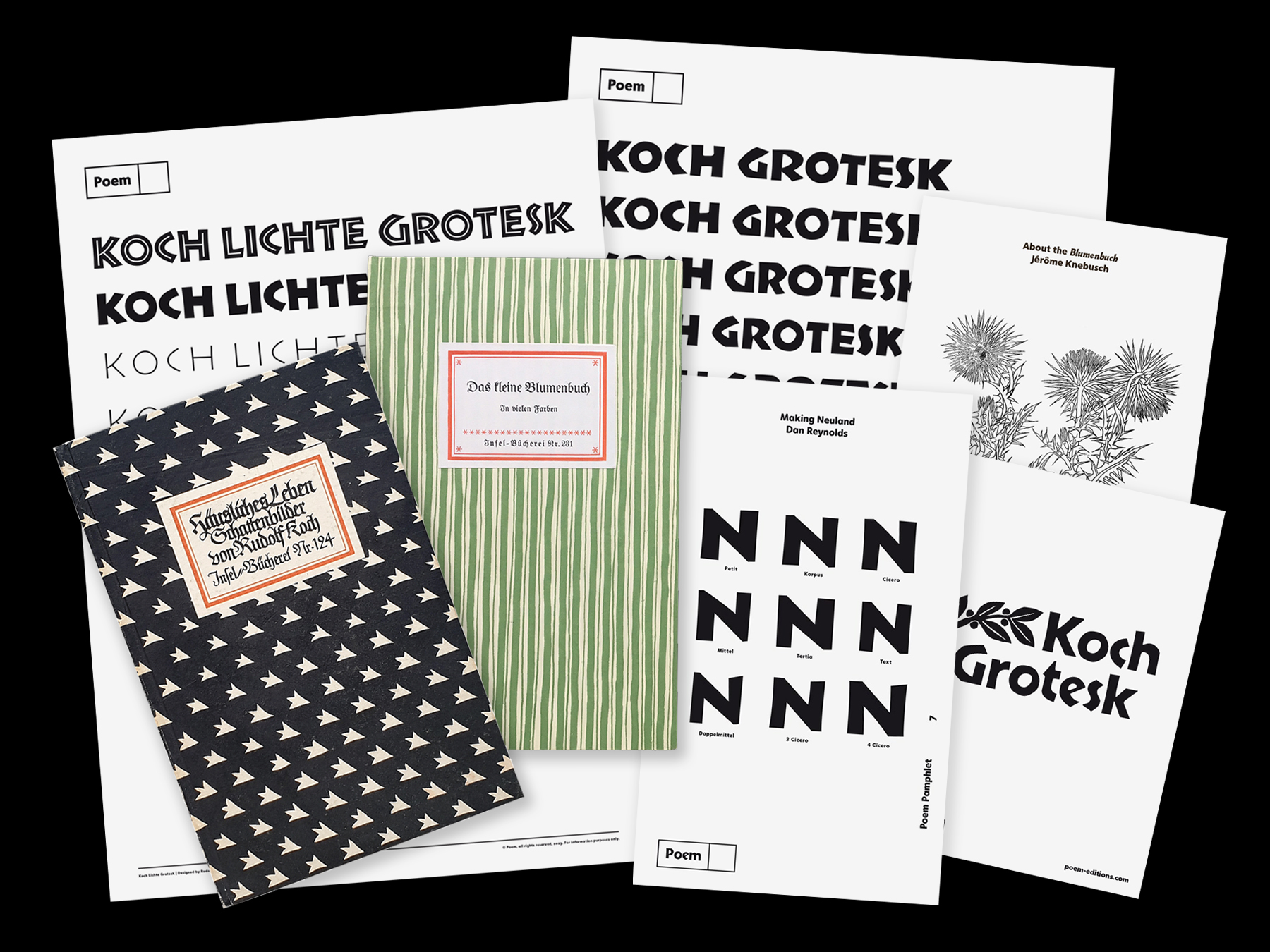 Poem is an independent publisher of editions and typefaces directed by Jérôme Knebusch and located in Frankfurt am Main. The editions – artworks, typefaces, books, pamphlets, posters – are often based on longer research and seek originality and quality in production. They are distributed exclusively on this website and shipped worldwide.