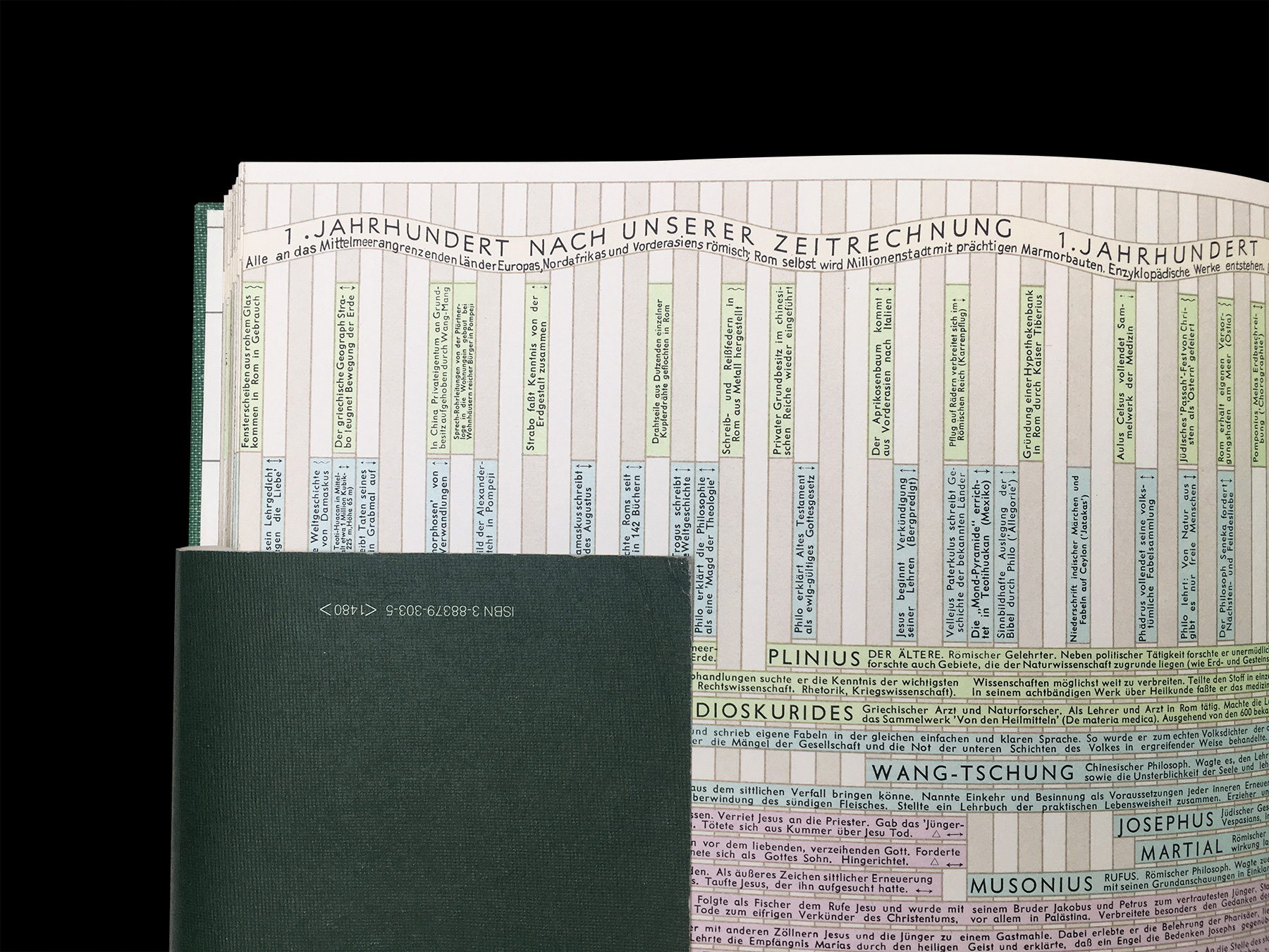 The Synchronoptische Weltgeschichte can be consulted at a third of its pages, starting with the 1st century until 1965.
