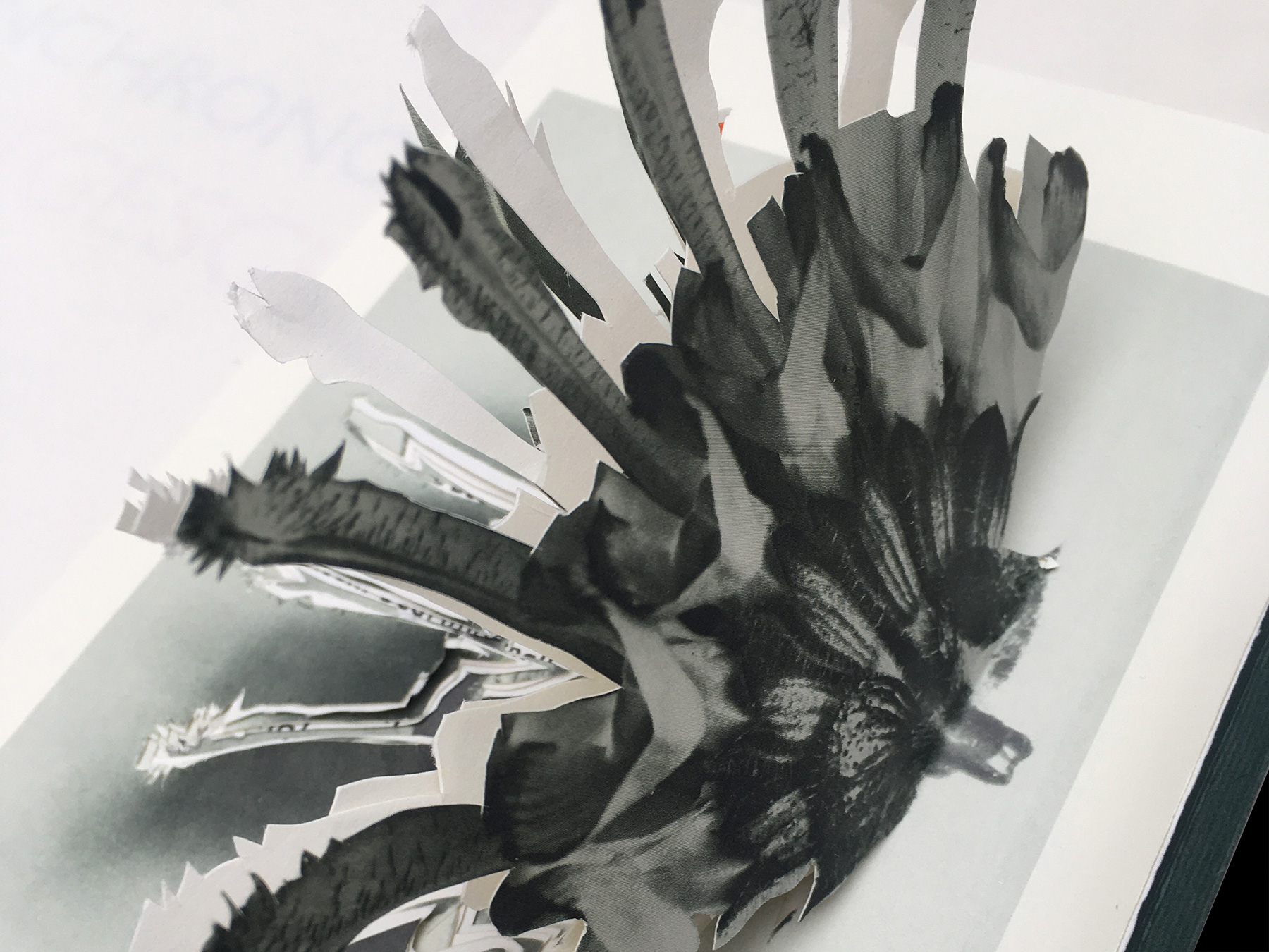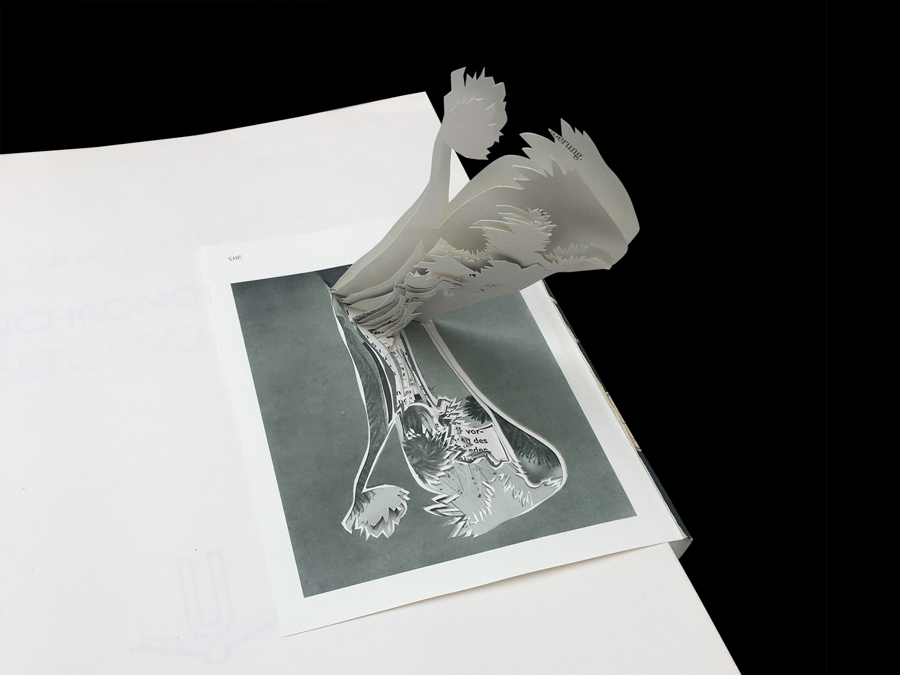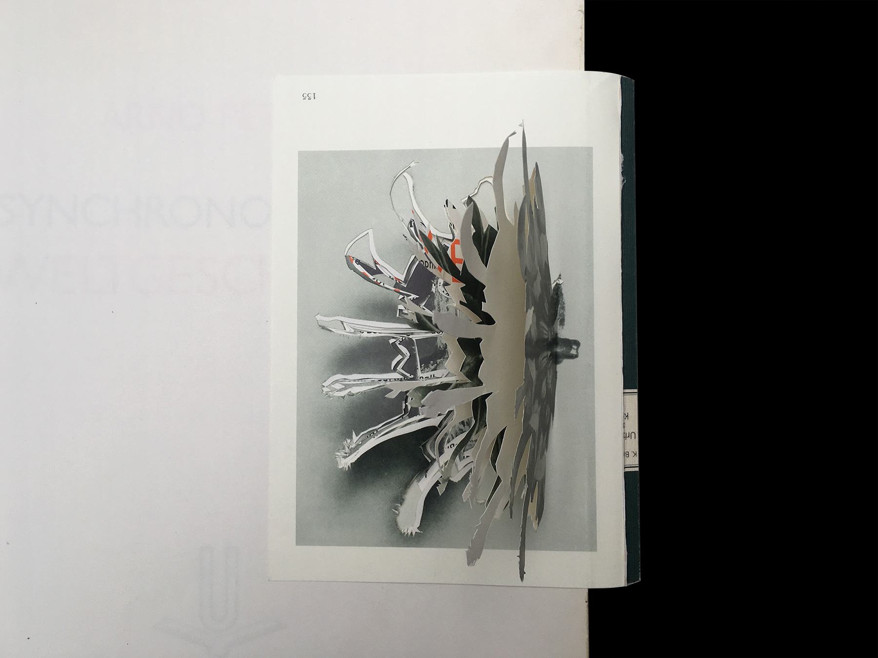 Nygård's works often depart from scientific facts, hypothesis or poetic relations. In Zeitlinie [Line of Time], she has juxtaposed abstract timelines and organic plant forms. The two books are inextricably linked by cutting into their layers, following the outlines of figures and patterns. In the intersections between the flat and the spatial, the figurative and the abstract, the scientific and poetic, there is a wish to see the world in a more open and interconnected manner.